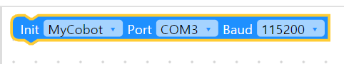 초기 설정을 위해서는 MyCobot 인스턴스 mc를 만들어주고, 포트인 COM3과 buad rate 115200을 인자로 준다.