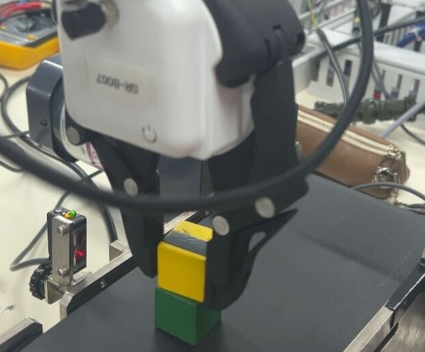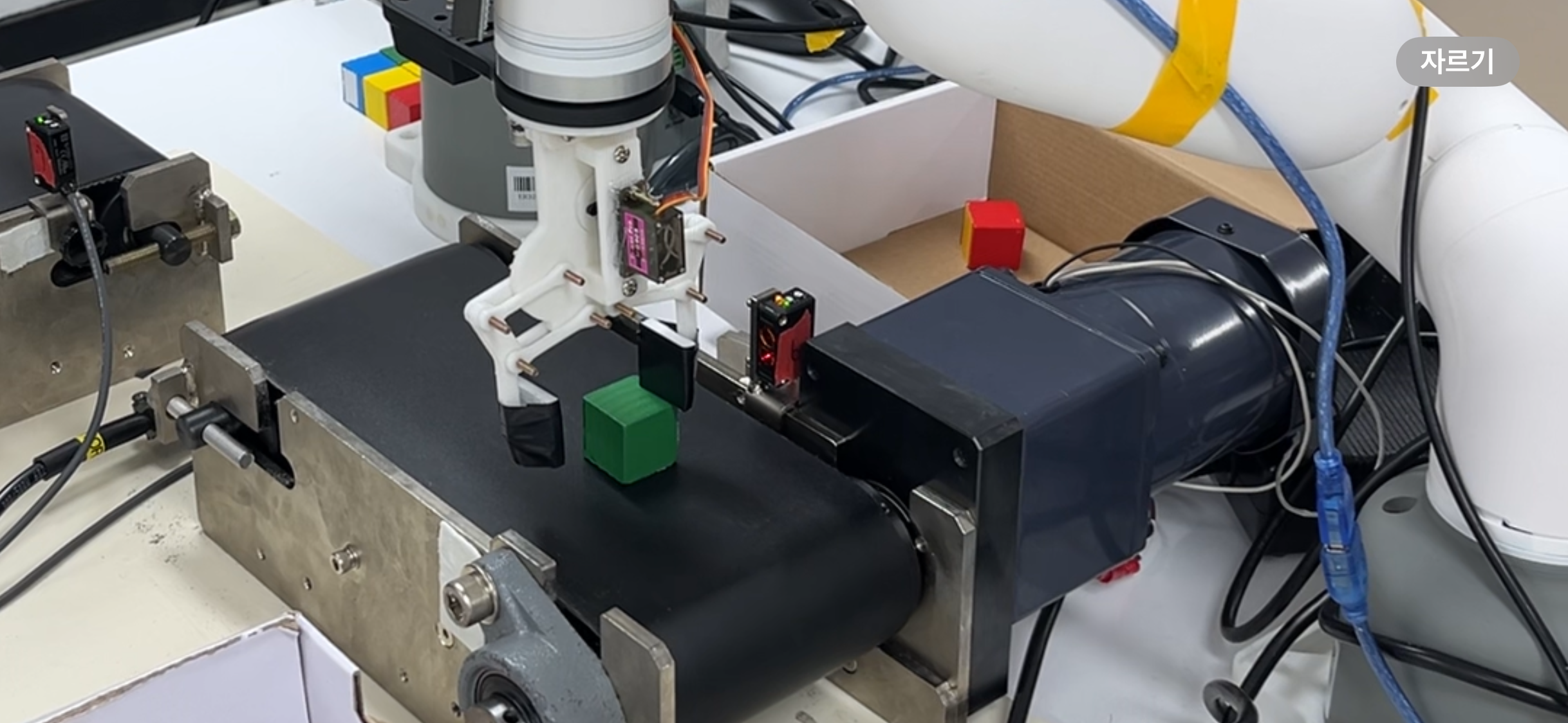 : PLC 컨베이어를 통해 블록이 전달되면 myCobot을 활용하여 블록을 색상별로 구분하고 그 중 3가지 색상만 선별하여 총 3층으로 적재하기