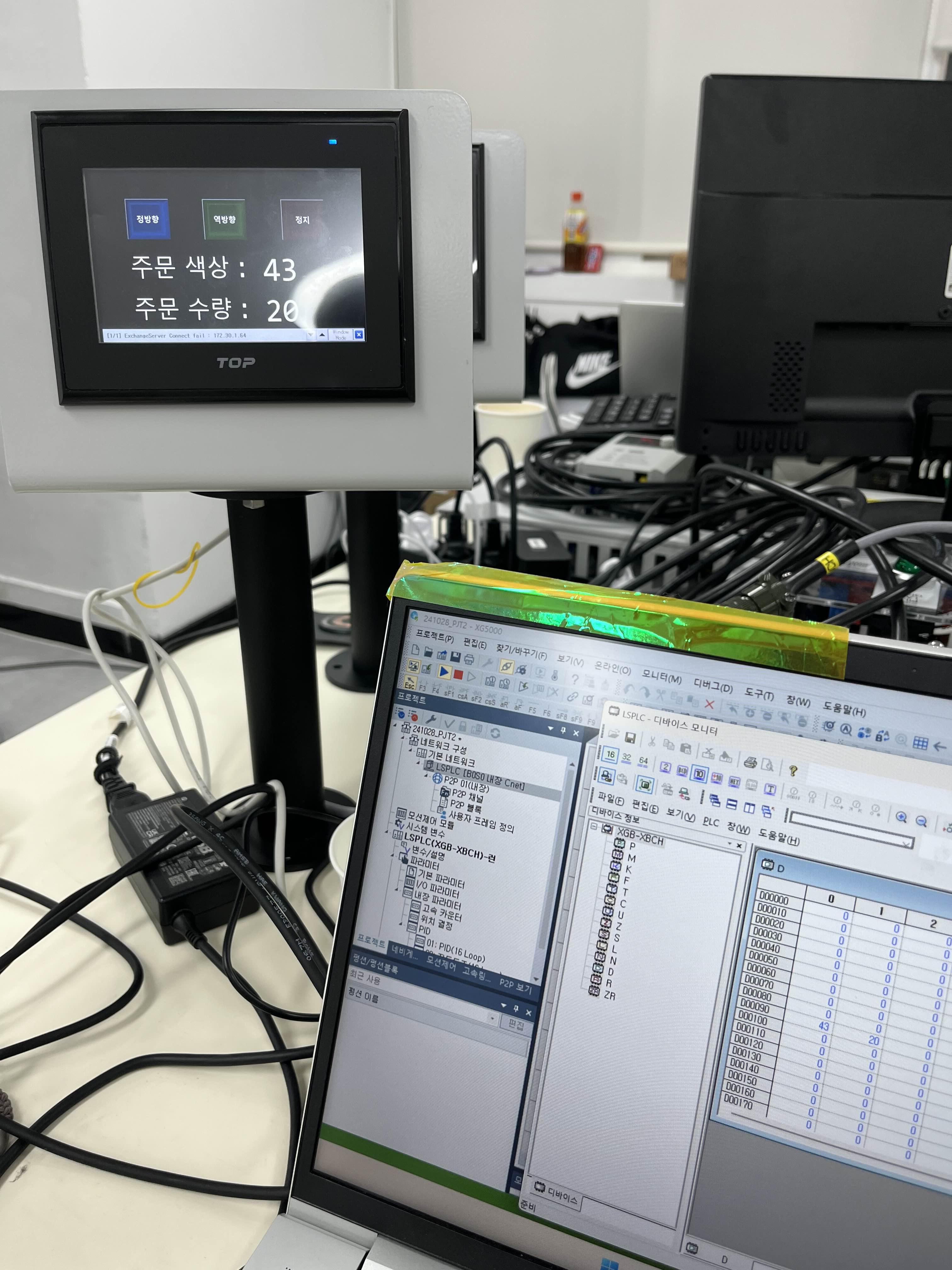 블록 이동을 시키기 위한 PLC 인버터를 작동과, touch를 통한 제어와 주문 접수까지 PLC에서도 상당히 많은 설정을 필요로 한 프로젝트였다.