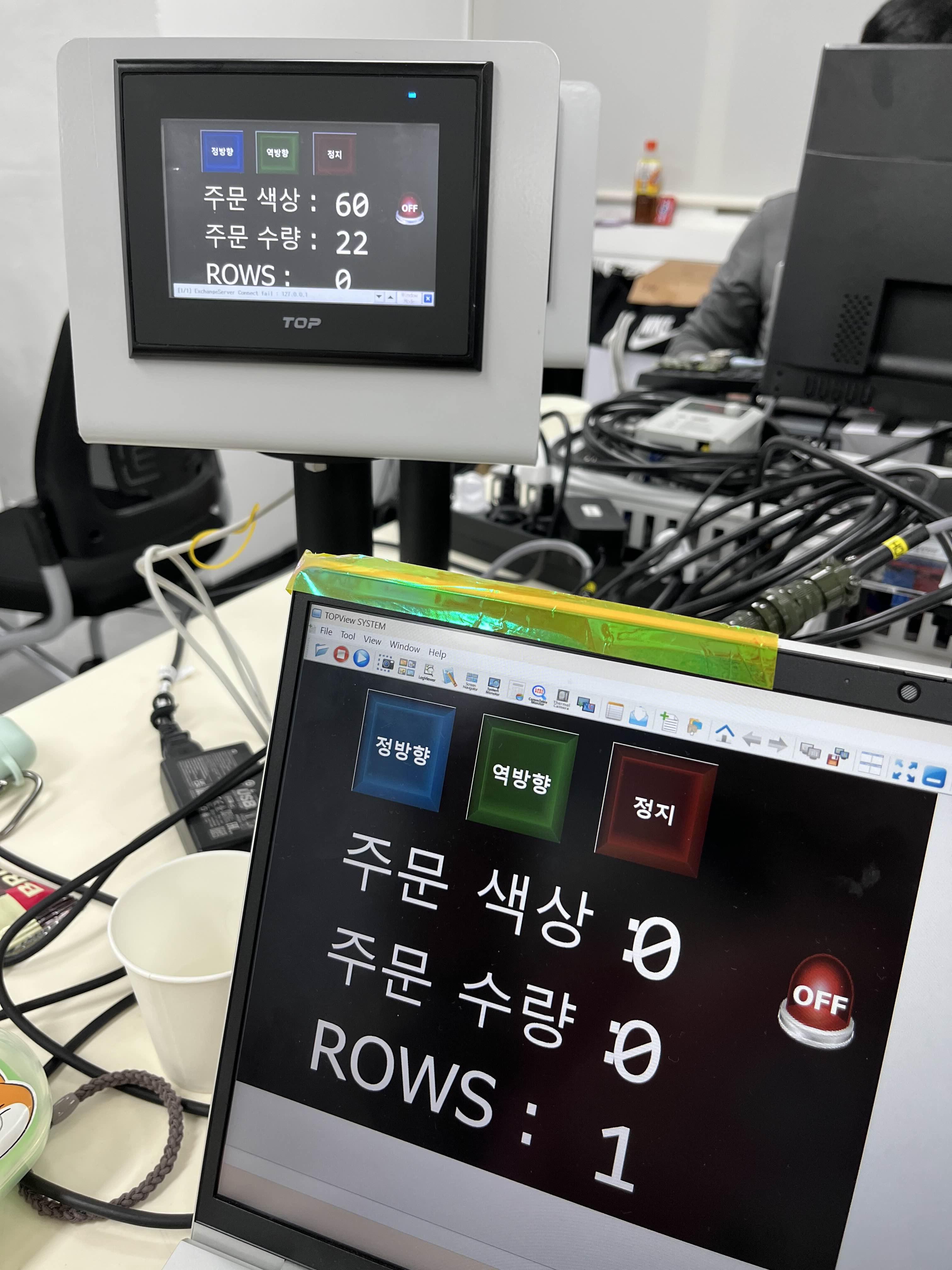 1) PLC touch와의 통신을 통해 특정 색상을 특정 수량만큼만 주문을 받고, 해당 주문에 해당하는 블록만 적재하기