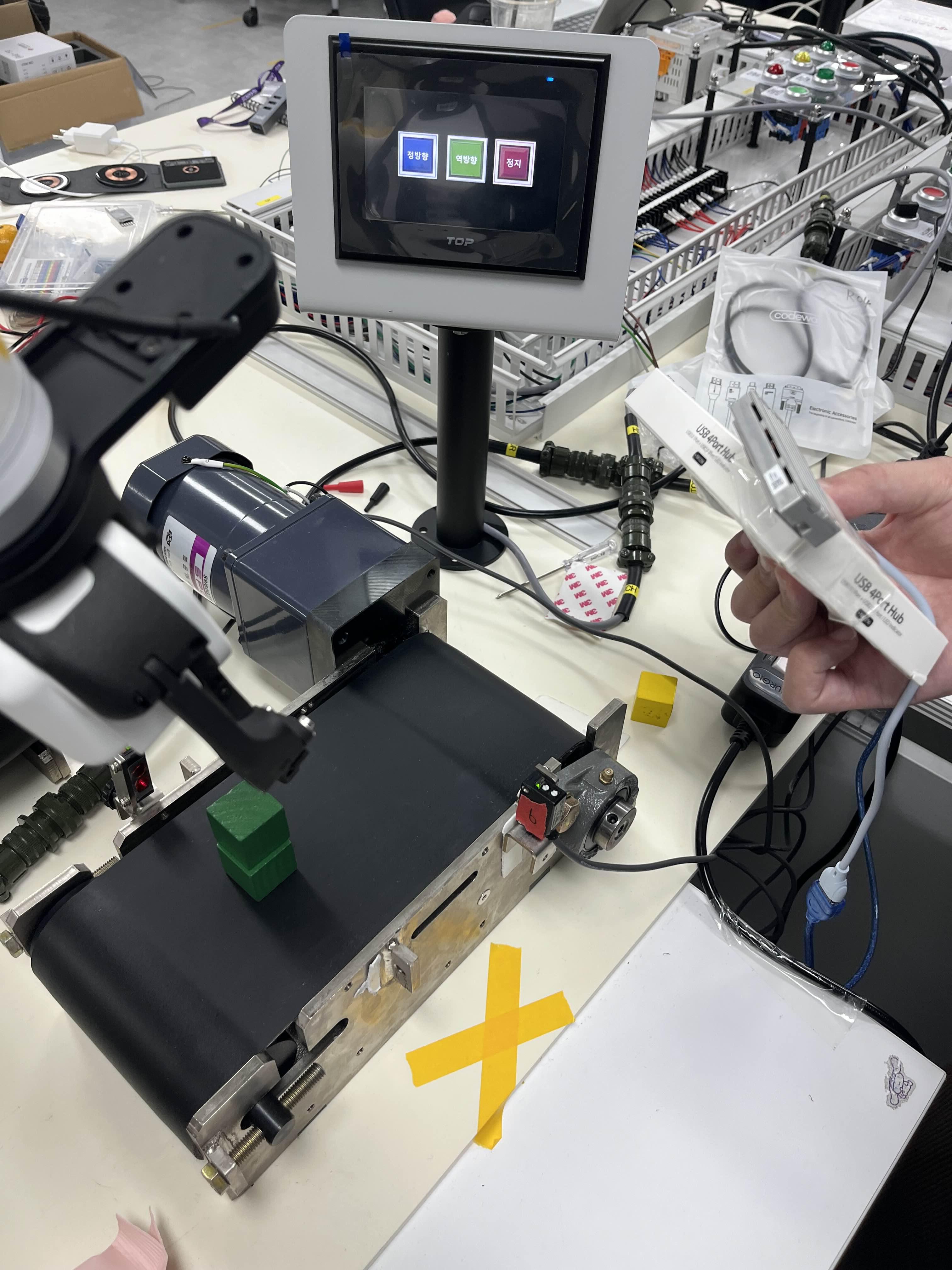 - 정말 담당자들이 매일매일 고생을 정말 많이했는데, 하드웨어라는 특성 상 매일 아침마다.. 아니면 하루 중간에라도.. 좌표 값이 미세하게나마 계속 틀어졌기 때문이다 ㅠ.ㅠ 그래서 분명히 잘 동작했던 부분도 테스트 하면 또 잘 집지 못하고 하는 부분이 있었고.. 결국 최종 테스트에서도 일부 블록이 잘 집히지 않는 문제가 있었다. (아래 사진처럼 같은 위치 같아도 잡히는 경우와 안잡히는 경우가 있었다) 이를 보정하기 위한 offset 확인 등을 통합 프로젝트에서는 고려해보기로 했다..